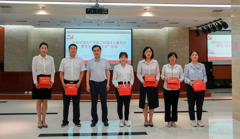 為慶祝建黨101周年,喜迎即將召開的黨的二十大,7月1日,西安投資控股有限公司黨總支舉辦慶祝建黨101周年主題黨日活動(dòng),集中為7月份前后入黨的黨員過“政治生日”。公司黨總支委員、黨員高管、各支部書記和黨員代表參加活動(dòng),黨總支書記杜巖岫參加并主持活動(dòng)。