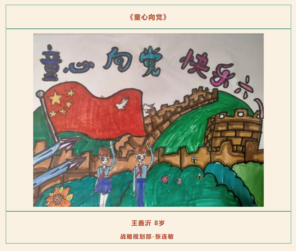 活動開始后,公司員工積極響應(yīng),一幅幅畫作色彩鮮艷、內(nèi)容豐富,稚嫩卻又生動的展現(xiàn)了西投寶寶們的童心、童夢,以“兒童視角”抒發(fā)了對黨、對祖國的熱愛。